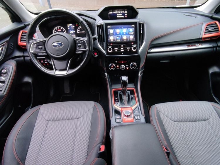 Binnenin maakt de Subaru Forester een hoogwaardige indruk, zonder zijn onverwoestbare karakter te verliezen. Het dashboard behoudt de bekende indeling met een combinatie van analoge en digitale meters, twee infotainmentschermen en fysieke knoppen voor de klimaatregeling. Verder heeft de occasion genoeg ruimte voor de meeste activiteiten: hij heeft namelijk een lengte van 4,62 meter en een bagageruimte van 509 tot 1.779 liter.