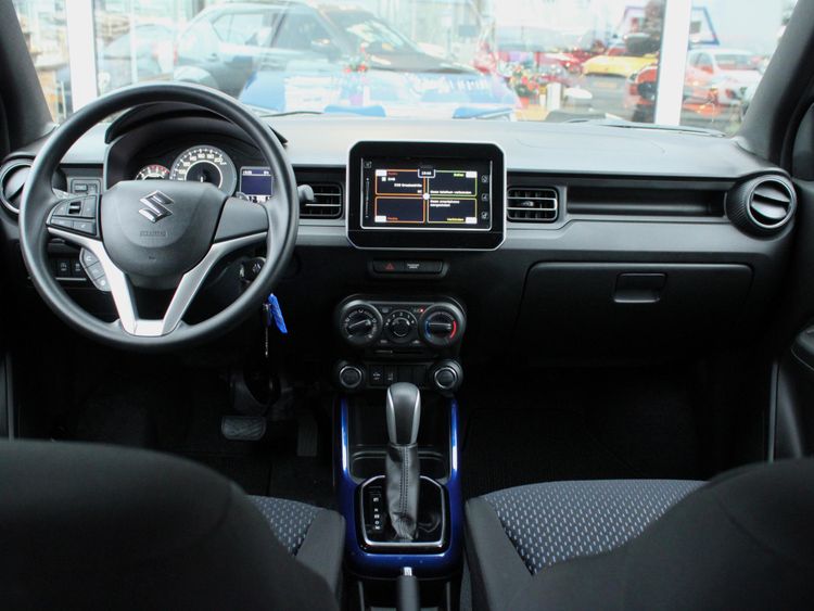Binnenin kiest de Suzuki Ignis voor eenvoud en functionaliteit. De materialen zijn niet bijzonder, maar de vormgeving is speels en overzichtelijk. Het analoge instrumentarium combineert met een radio/cd-speler of een 7-inch infotainmentscherm met smartphone-koppeling. De hoge zitpositie is een duidelijk pluspunt, al is het stuur van de occasion maar beperkt verstelbaar.